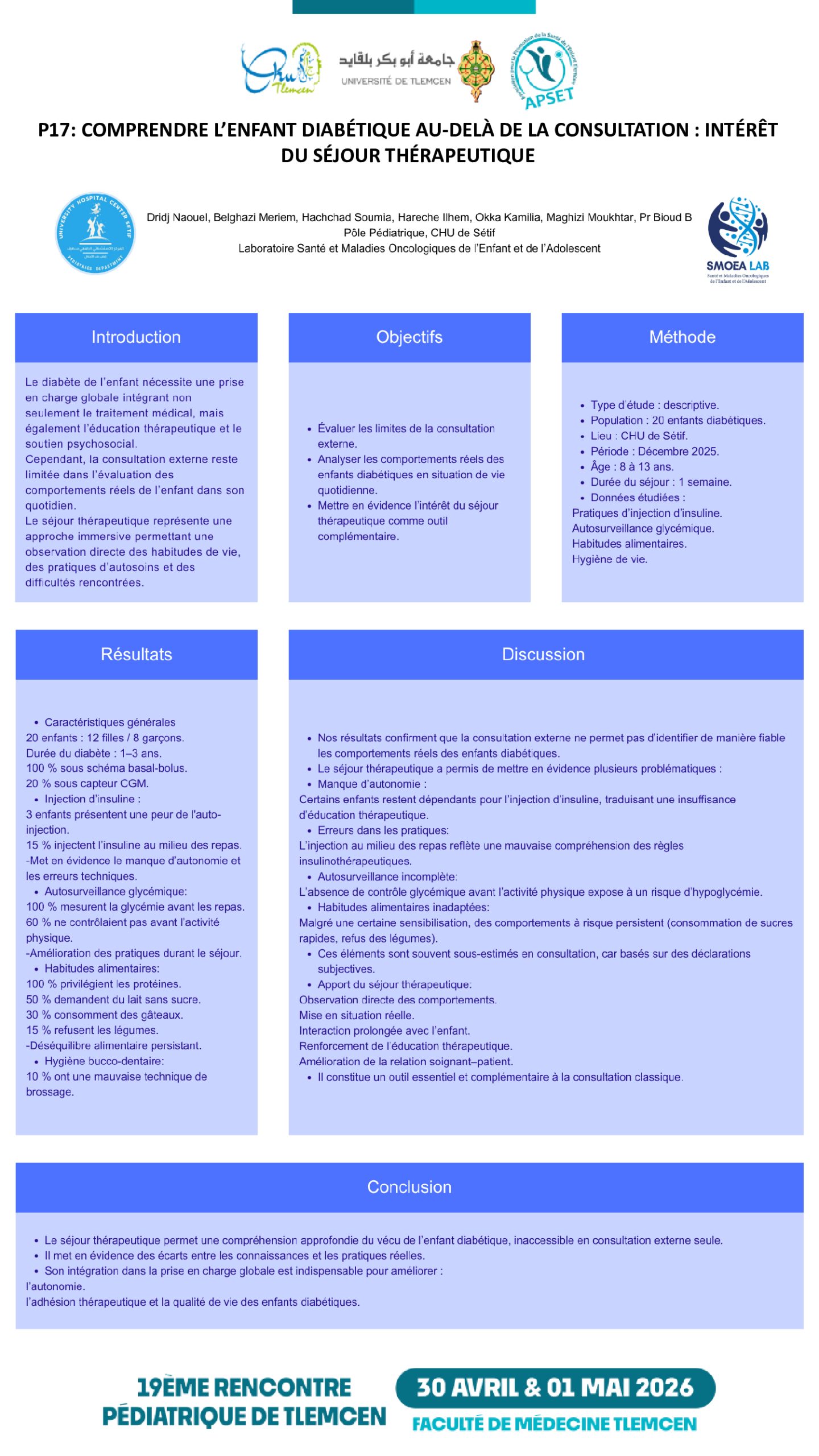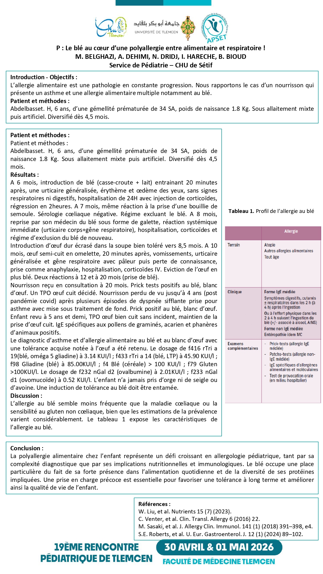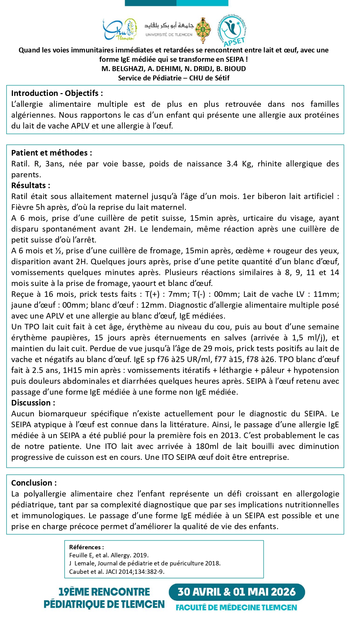 F.Z. BENBIDA¹², S. MARHOUM¹², F. KACIMI¹², S. BENYACOUB¹², D.J. SELKA¹², C.H. EL MEZOUAR¹² ¹ Université Abou-Bekr Belkaid, Faculté de médecine de Tlemcen Dr Benzerdjeb Benouda ; ² Service de pédiatrie EHS mère-enfant Tlemcen Introduction : Les MICI dominées par la maladie de
